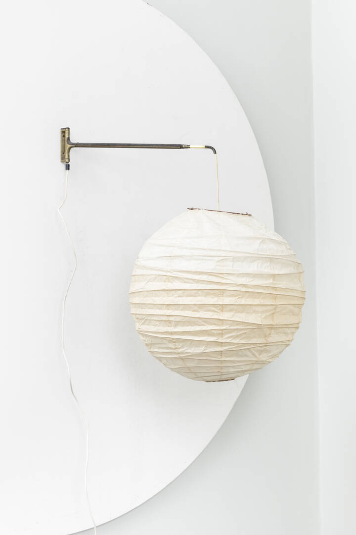 Lampada estensibile e orientabile in ottone, paralume in carta di riso.