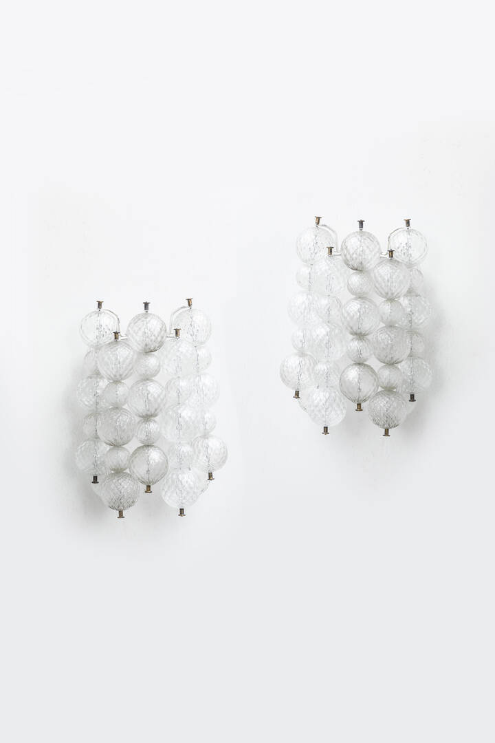 Coppia di appliques in vetro soffiato a lavorazione balloton e ottone.