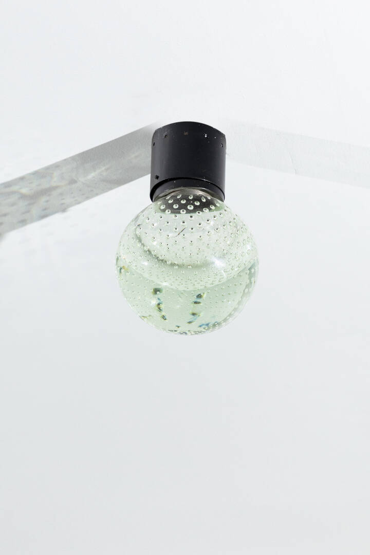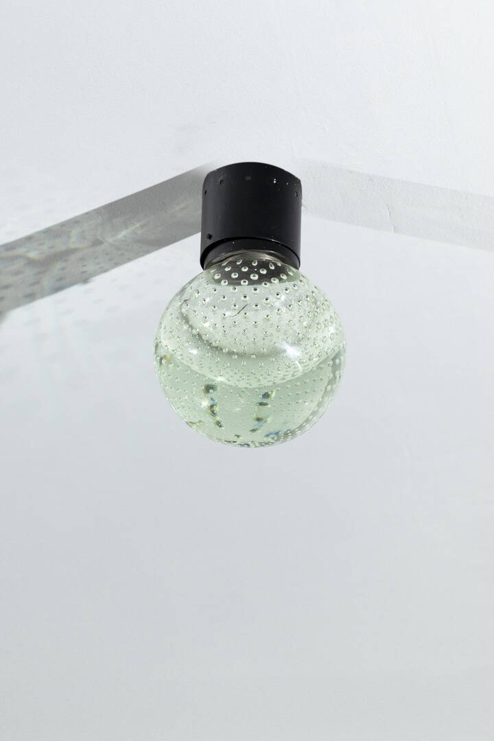 Lampada a plafone o a parete in metallo verniciato, diffusore in vetro di Murano.