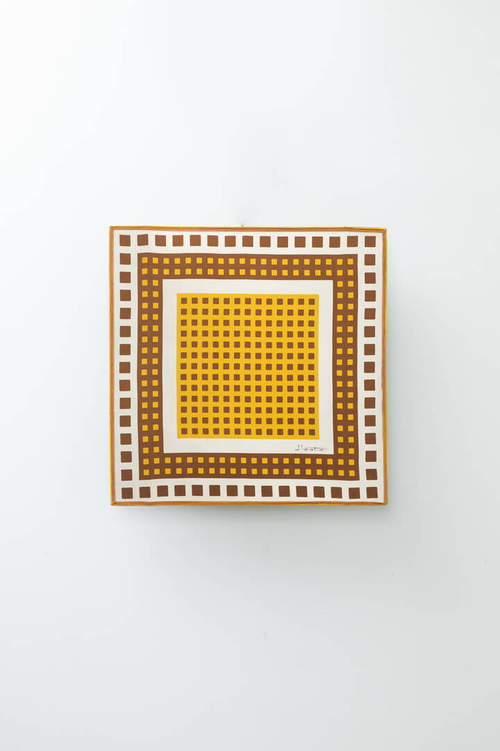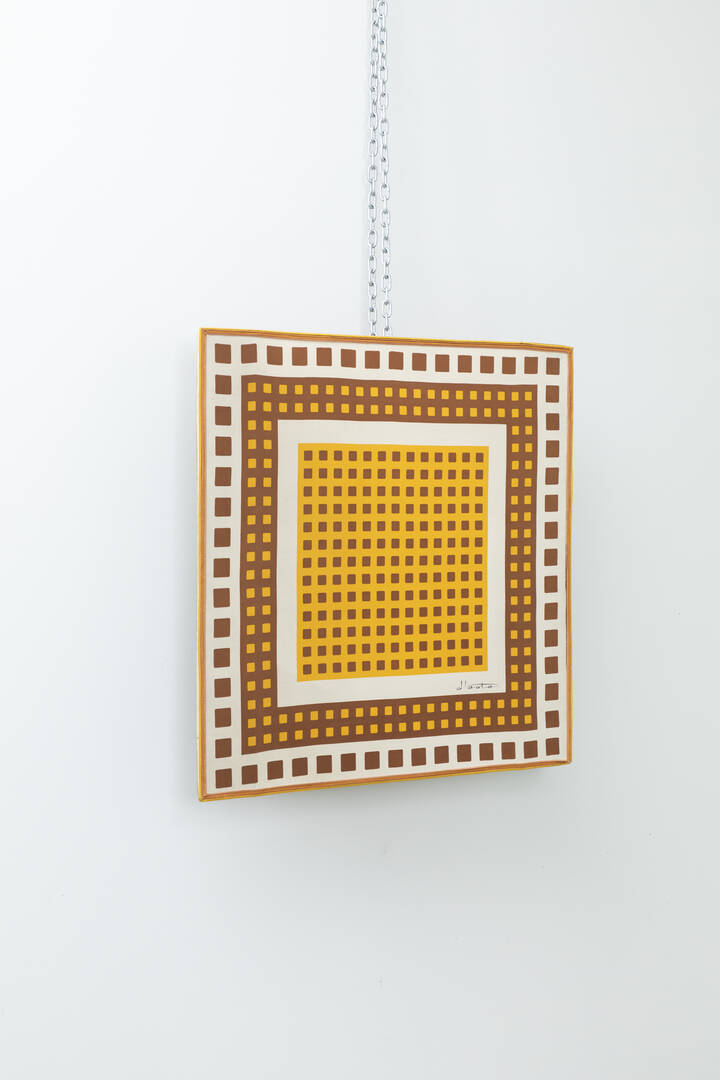 Lampada da muro con struttura in metallo e paralume in stoffa.