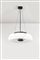 Lampada a sospensione con diffusore in metacrilato opalino, sovraccoppa in alluminio.