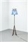Lampada da terra in metallo laccato e legno di teak, diffusori in vetro colorato.