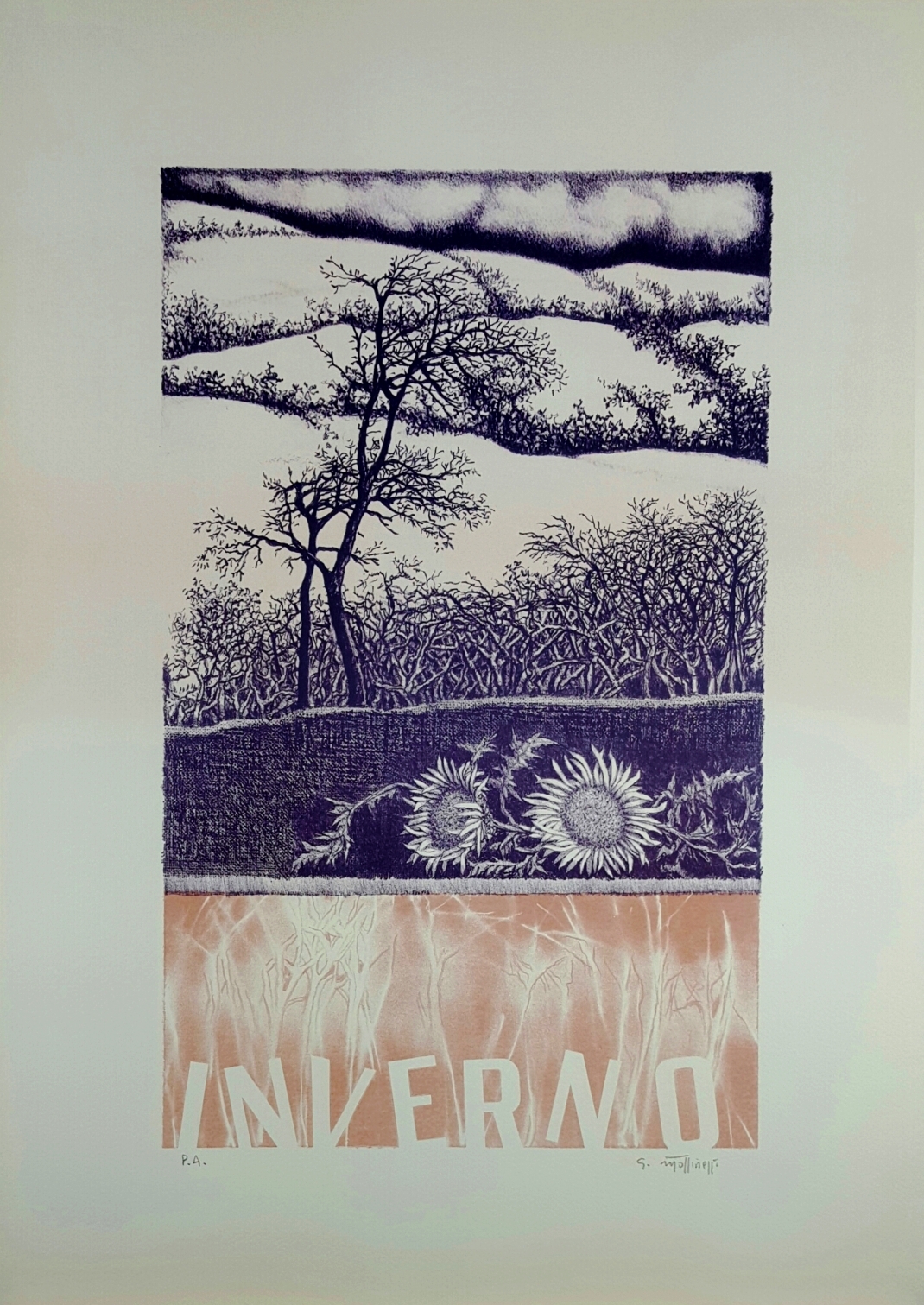 MOTTINELLI GIULIO Valcamonica 1943 “Senza titolo” litografia a colori cm 50x70. Firmata sul fronte in basso a destra, tiratura P.A. in basso a sinistra.