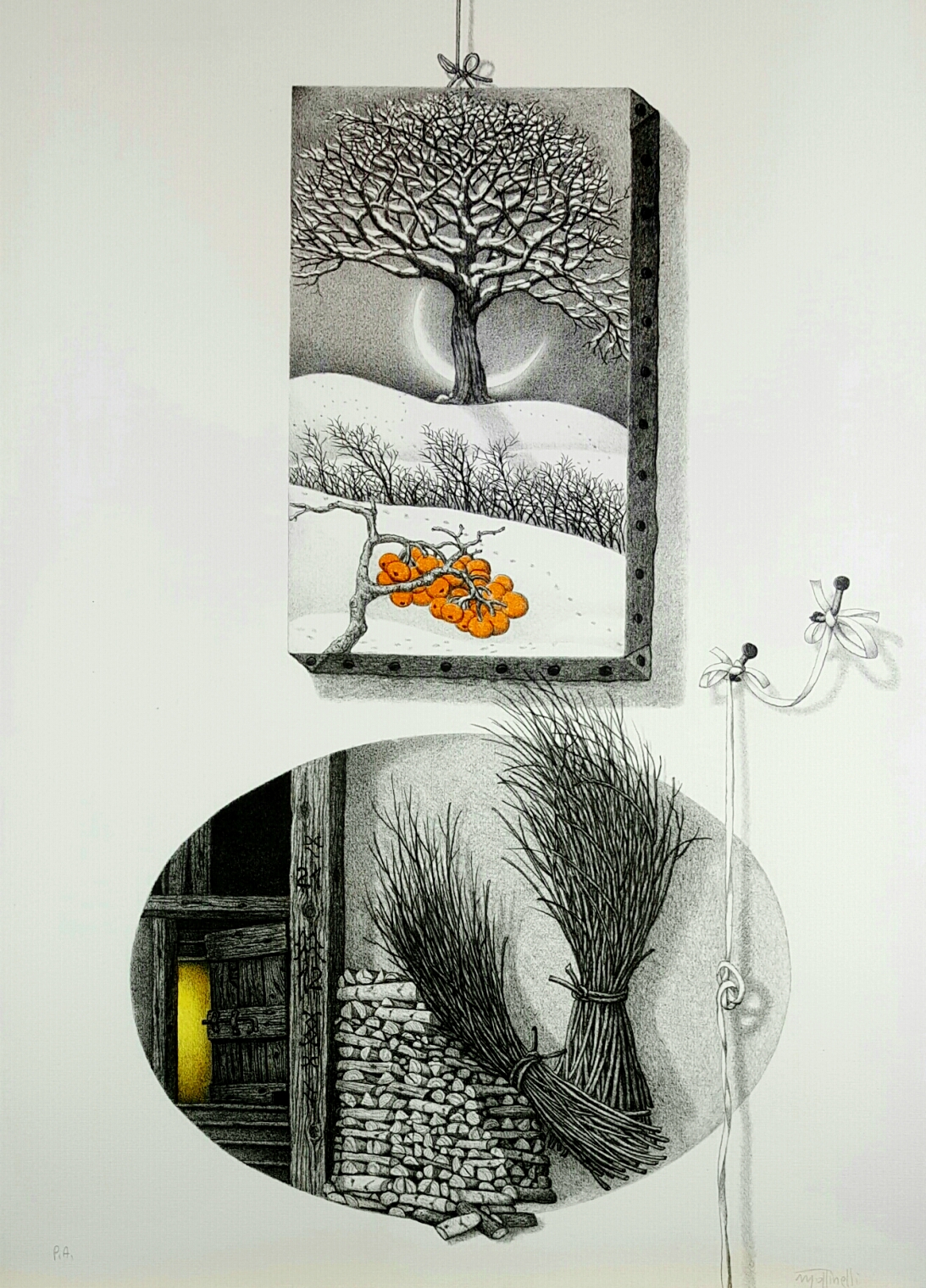 MOTTINELLI GIULIO Valcamonica 1943 “Senza titolo” litografia a colori cm 50x70. Firmata sul fronte in basso a destra, tiratura P.A. in basso a sinistra.