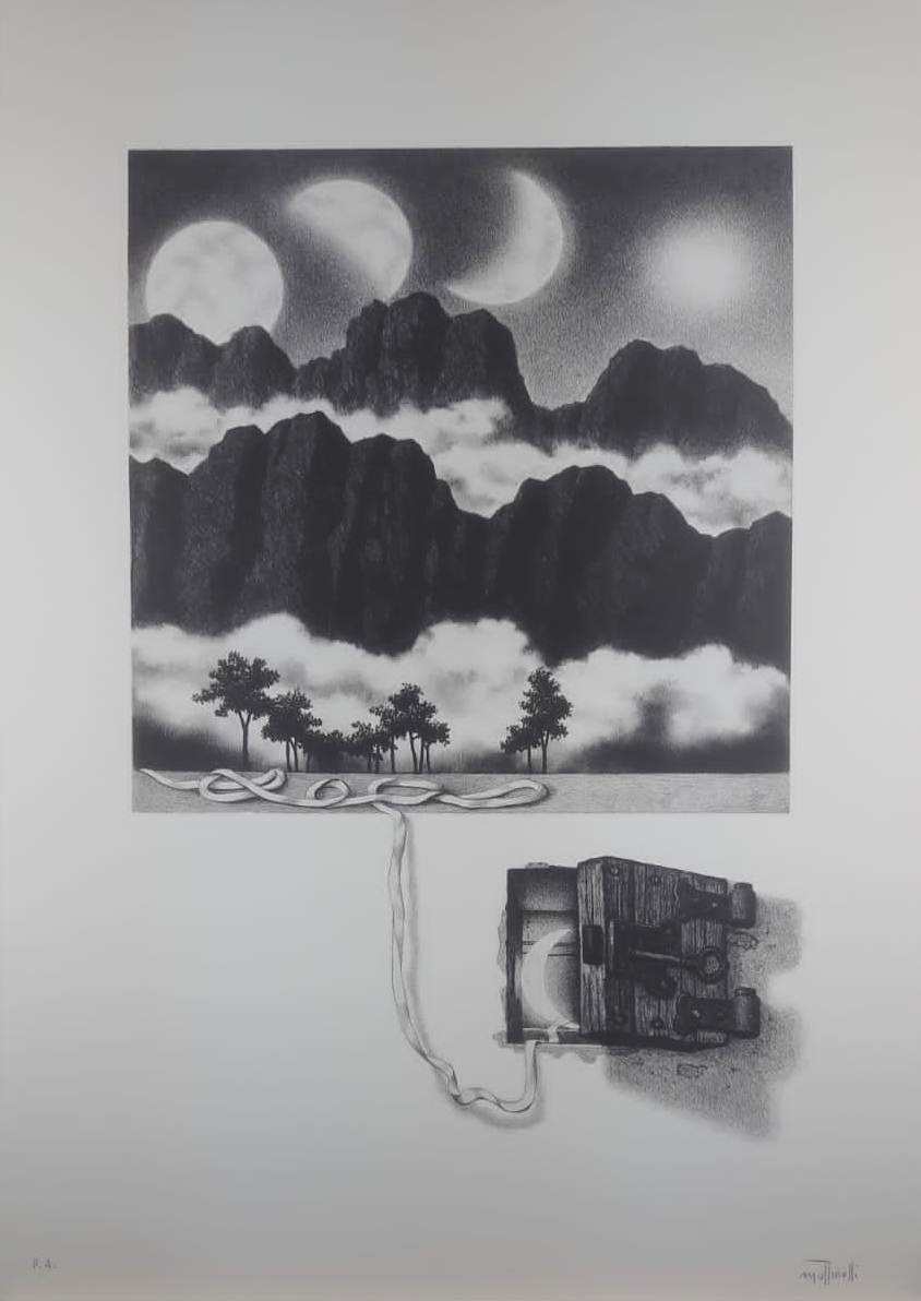 MOTTINELLI GIULIO Valcamonica 1943 “Senza titolo” litografia cm 50x70. Firmata sul fronte in basso a destra, a sinistra tiratura P A.