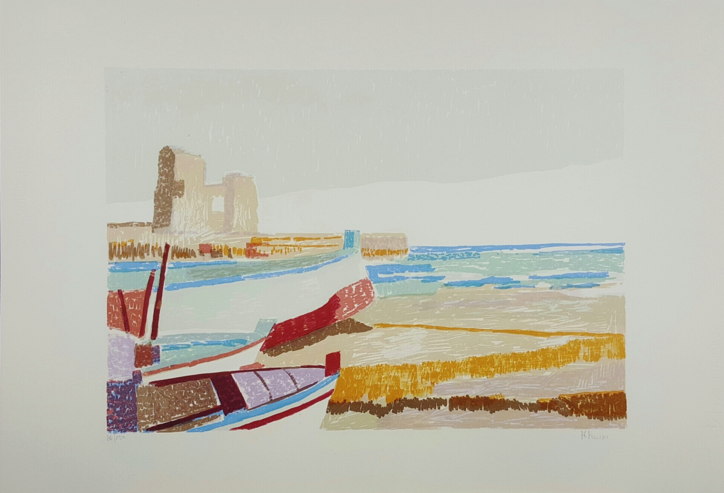 FOLLINI ANNIBALE “Senza titolo” litografia a colori cm 49x69. Firmata sul fronte in basso a destra, tiratura 26/150 a sinistra.