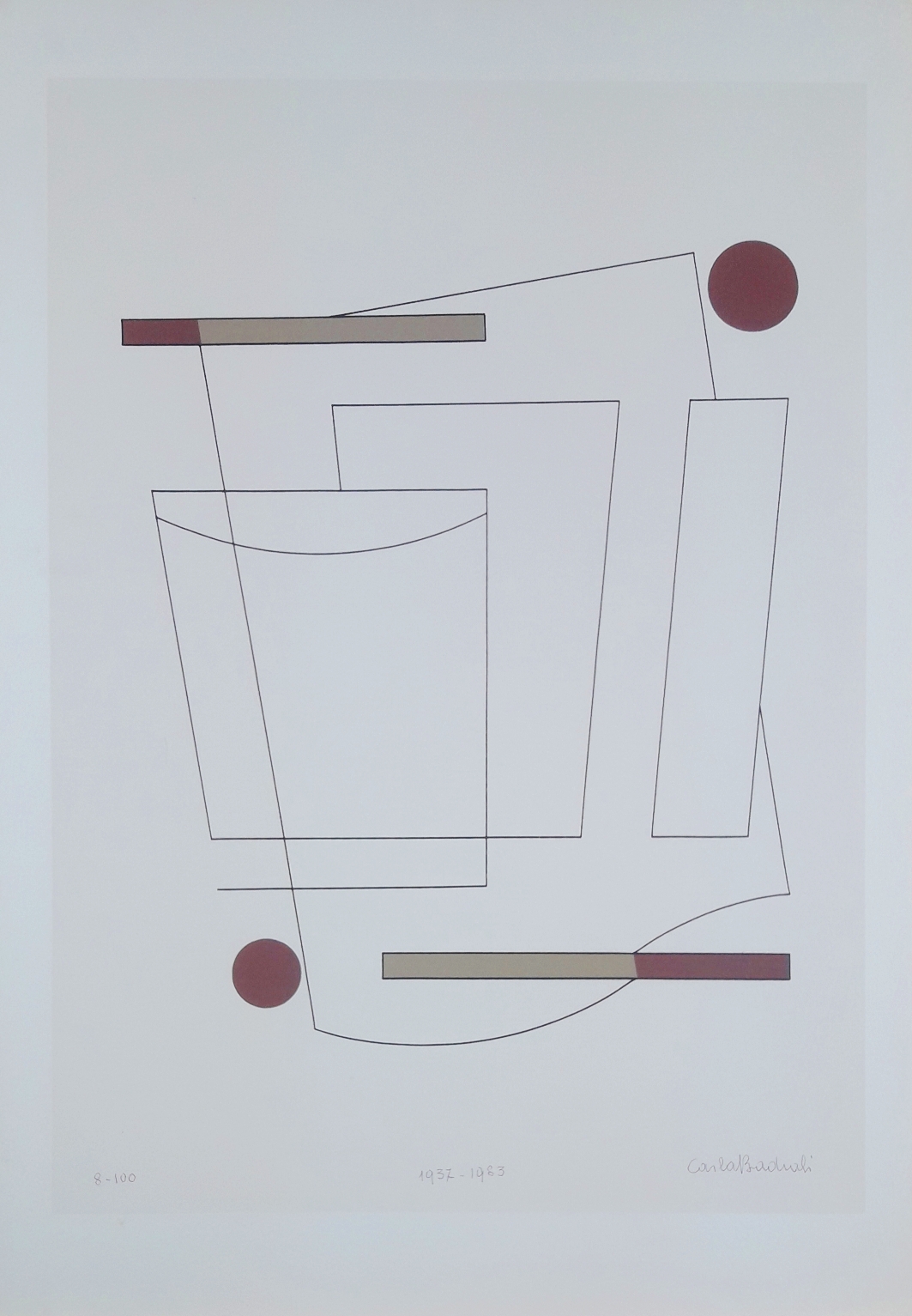 BADIALI CARLA Novedrate 1907-Como 1992 “Composizione” serigrafia su cartoncino cm 33x48. Firmata sul fronte in basso a destra, tiratura 8/100 a sinistra, datata al centro 1937-1983