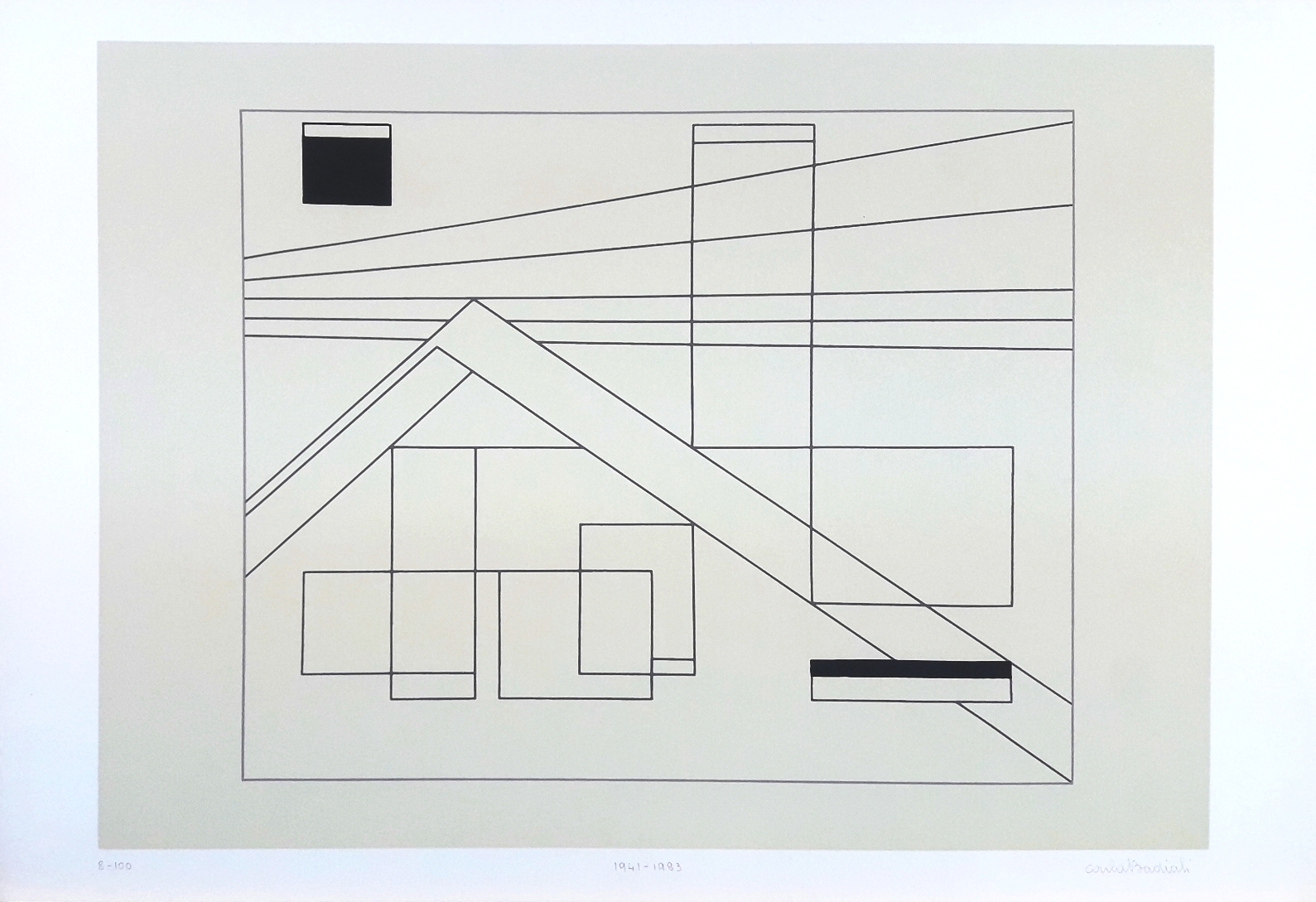 BADIALI CARLA Novedrate 1907-Como 1992 “Composizione” serigrafia su cartoncino cm 33x48. Firmata sul fronte in basso a destra, tiratura 8/100 a sinistra, datata al centro 1941-1983.