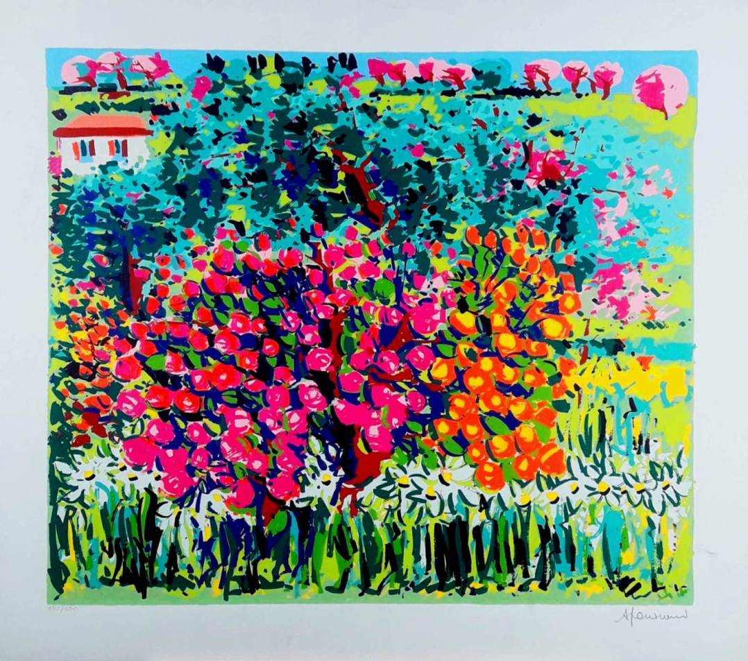 FACCINCANI ATHOS Peschiera del Garda 1951 “Senza titolo” serigrafia materica a colori su cartoncino cm 70x80. Firmata e timbrata a secco in basso a destra, tiratura 132/150 in basso a sinistra.