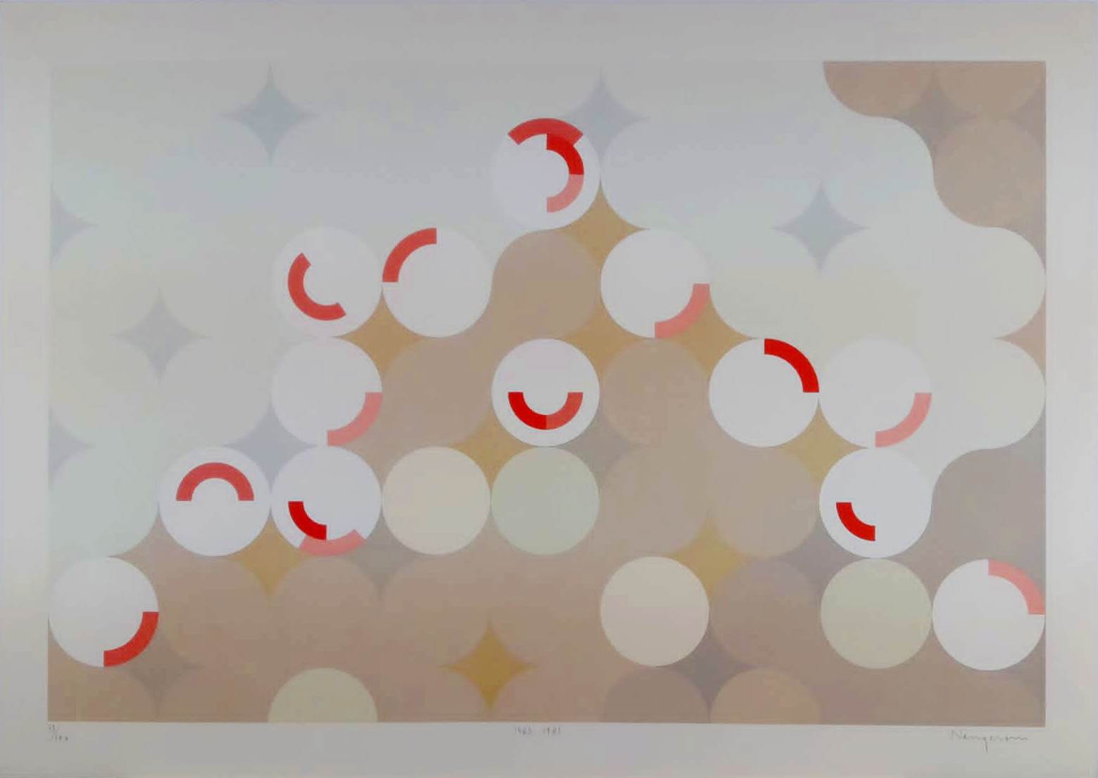 NANGERONI CARLO NewYork 1922 Milano 2018 “Seriale-ritmato” serigrafia a 10 colori su cartoncino cm 50x70. Firmata sul fronte in basso a destra, datata 1963-1985 al centro, numerata 79/100 a sinistra.