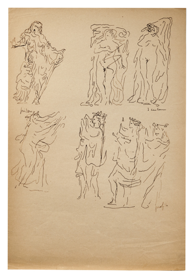 LUCIO FONTANA Studi per scultura Inchiostro su carta cm. 31x21 scritte...