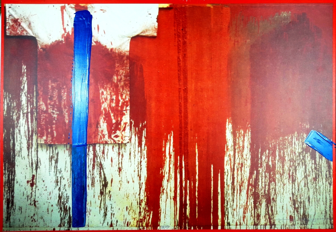 NITSCH HERMANN Vienna 1938 “Senza titolo” opere multiple ridipinte a mano, ogni foglio è un originale ridipinto a mano singolarmente e diverso dagli altri soggetti simili. La base litografica realizzata su cartoncino acquerello 300 gr. della Fedrigoni, reincartonate su cartone industriale cm 71x101 del 1991 (opere in mostra e terminate presso la sede Domus Jani Verona). Firmata in basso a destra tiratura 8/150.