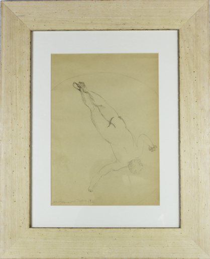 GERMANA’ MIMMO Catania 1944 Milano 1992 "Tuffo” matita su carta cm 39x27 del 1981. Firmato e datato in basso a sinistra. Esposizione al Museo delle Arti “Palazzo Bandera” Opera pubblicata a pagina 23 nel catalogo "Mimmo Germanà - Sogni di segni" realizzato in occasione della mostra tenutasi presso il Museo delle Arti/Palazzo Bandera nel Maggio-Giugno 1998. Il catalogo non è incluso. Opera registrata presso l'Archivio Generale delle Opere di Mimmo Germanà. Certificato di archiviazione con foto dell'opera. Opera incorniciata.