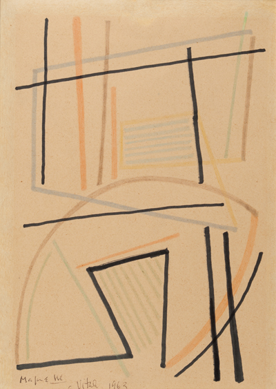ALBERTO MAGNELLI Senza titolo, 1963 tecnica mista su carta , cm. 34x24 firmato, datato e dedicato a Vitale 1963 in basso a sinistra autentica su fotografia di Anne Maisonnier n° 11.0305/119 datata 5 marzo 2011 Untitled, 1963 mixed media on paper, cm. 34x24 signed, dated and dedicated to Vitale 1963 in the bottom left photo certificate from Anne Maisonnier n° 11.0305/119 dated 5 March 2011