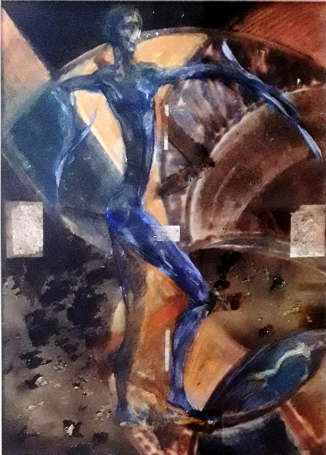 CECCOBELLI BRUNO Perugia 1952 "Ballerino in blu” olio e tecnica mista su tela cm 35,7x50. Sul retro firmato con ideogramma e intitolato. Autentica su foto a cura dell’artista.