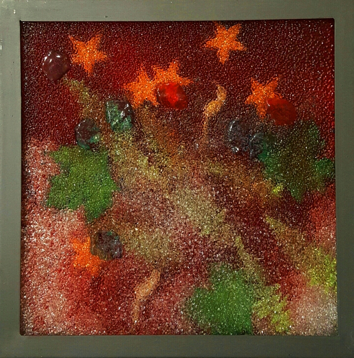 RONDA OMAR Portula 1947- Biella 2017 “Frozen” inclusioni di oggetti in resina cm 45x45 del 1992. Al retro etichetta con dichiarazione d’autenticità dell’artista con timbri, firma e numero d’archivio