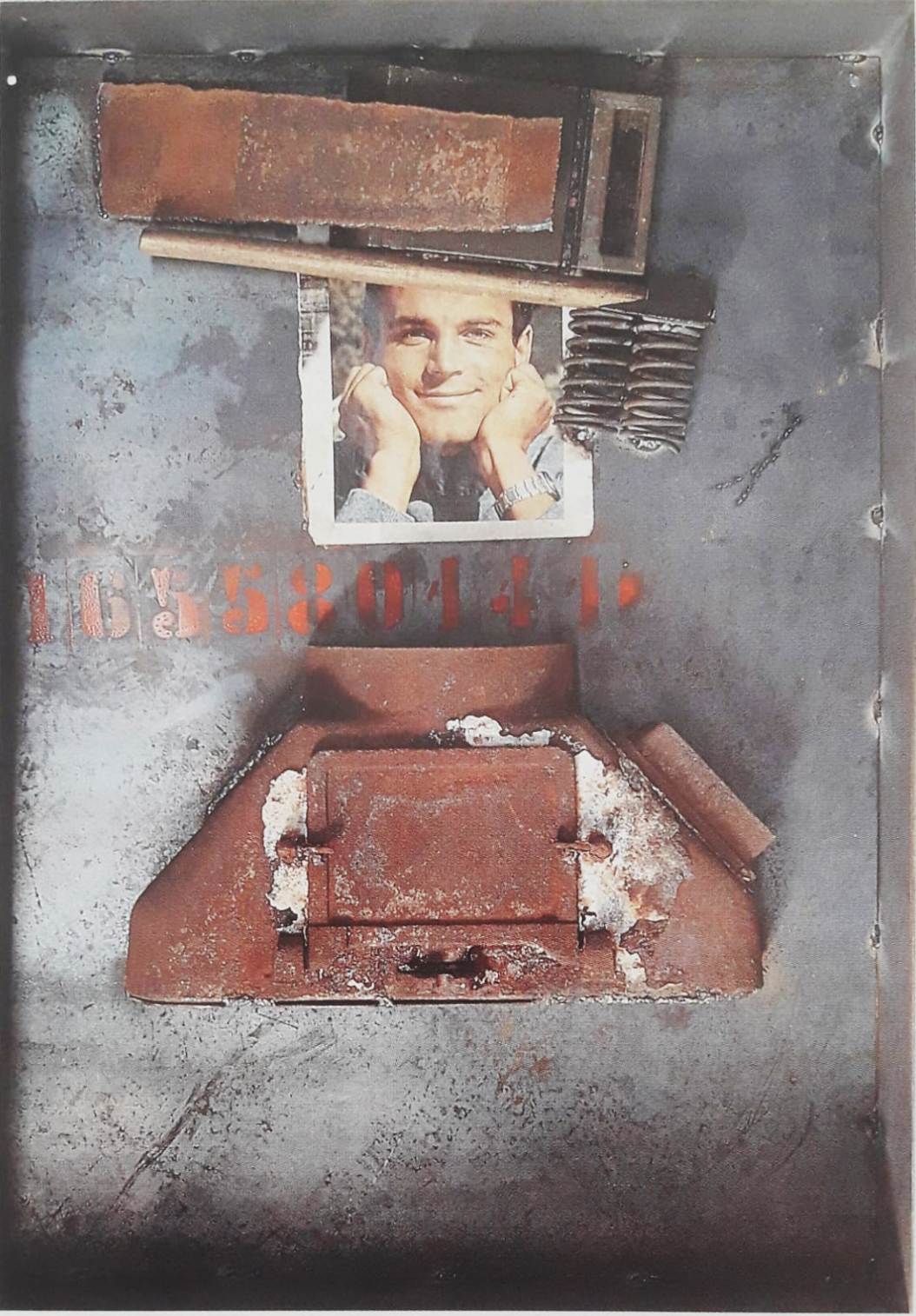 DE CHIRICO JAKOB Innsbruck 1943 “Senza titolo” acrilici , collage e assemblaggio di oggetti di recupero in teca di acciaio cm 80x110x24 di spessore. Opera pubblicata a piena pagina del catalogo “Makela”.