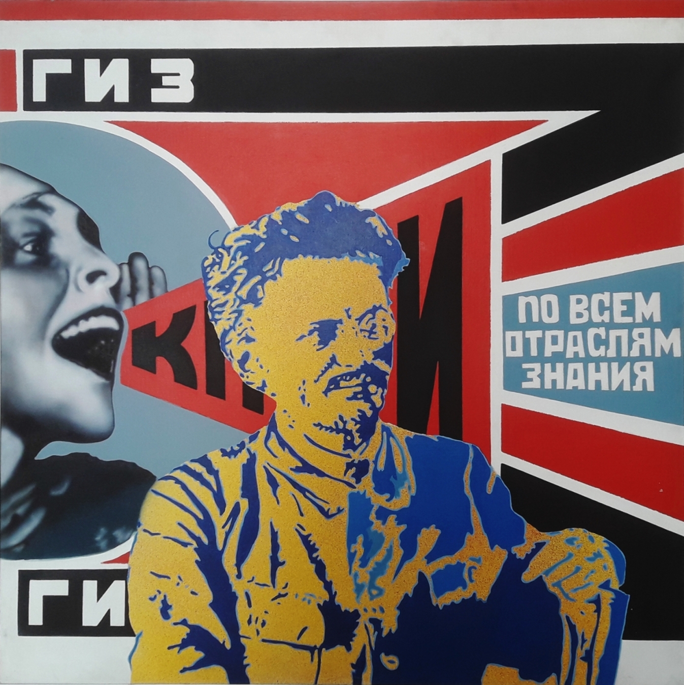 SPADARI GIANGIACOMO Repubblica di San Maino 1938-Milano 1997 “Propaganda del libro” acrilico e fluorescente su tela cm 100x100 del 1972. Sul retro titolo, anno ed etichetta della Galleria Schwarz. Riscontro e autentica su fotografia a cura del figlio Alessandro.