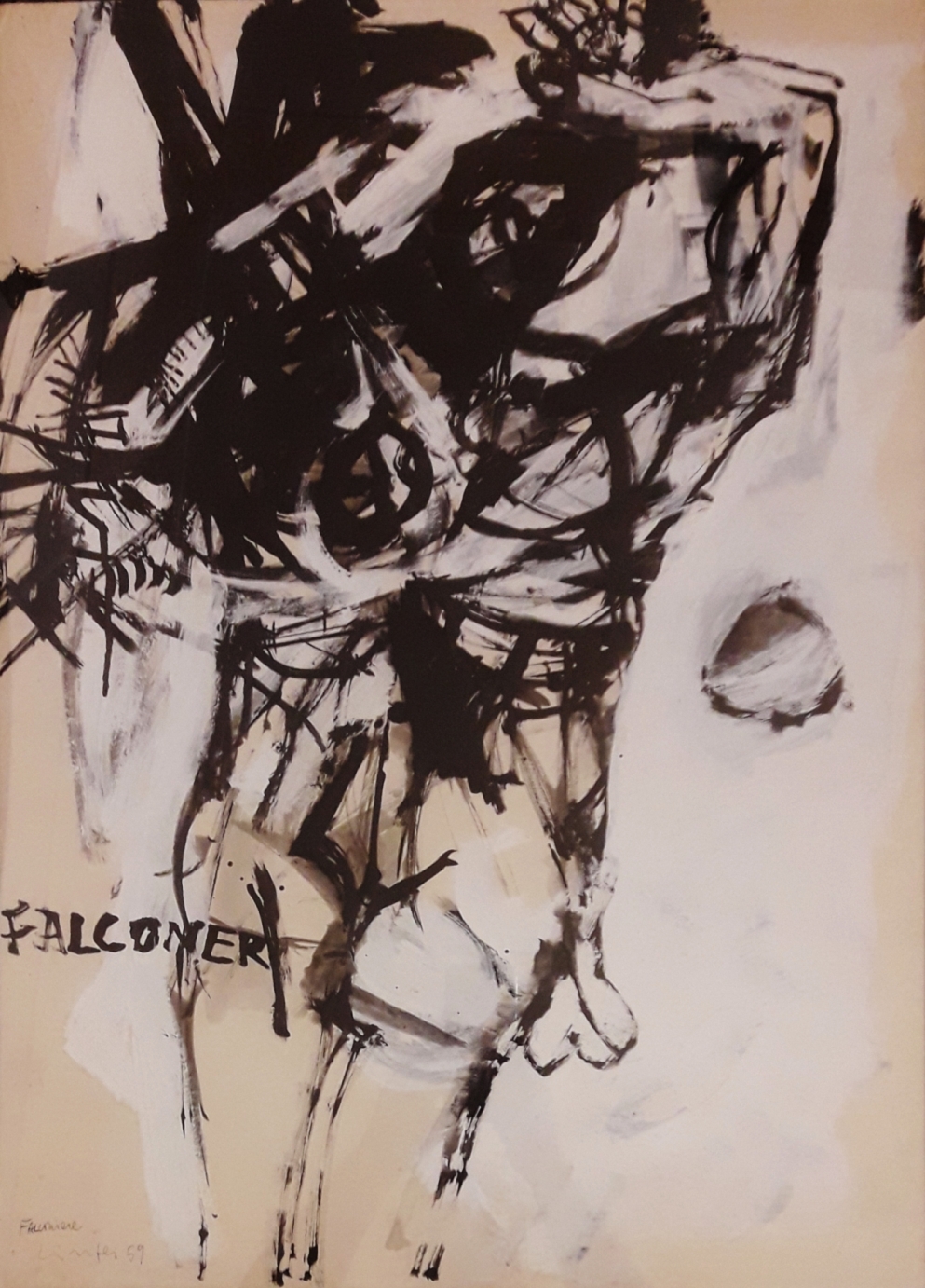CINTOLI CLAUDIO Imola 1935 Roma 1978 “Falconiere” china e tempera su carta cm 72x50 del 1959. Firmata, datata e intitolata sul fronte in basso a sinistra. Certificato di archiviazione a cura della P.I. Gallery. Provenienza collezione privata Vittorio Cintoli.