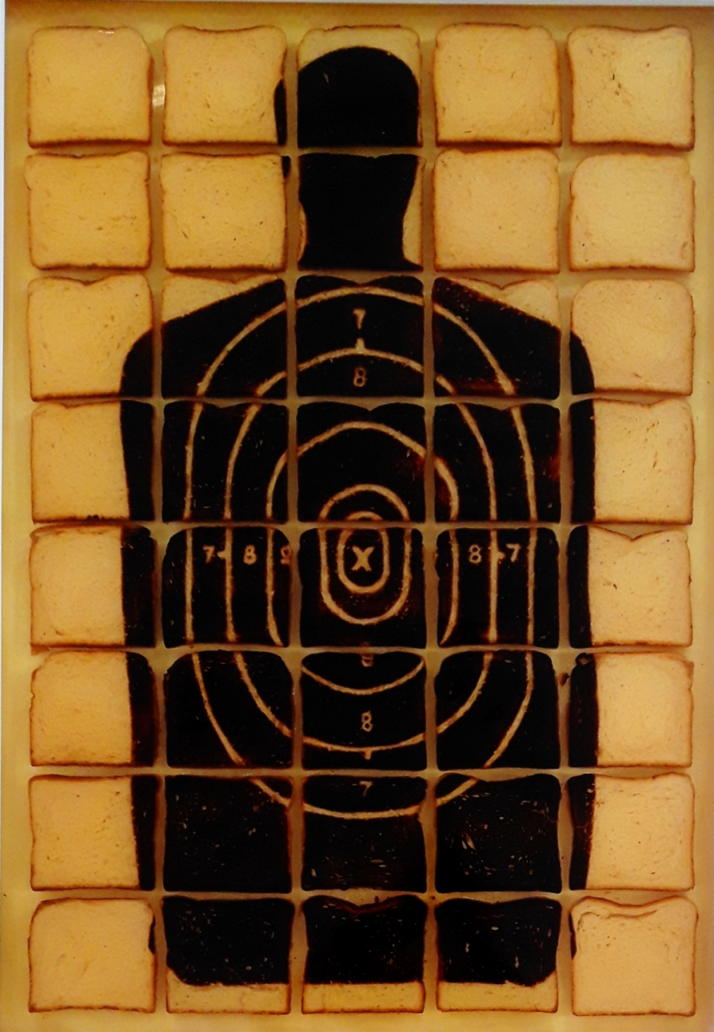RAIMONDO DAVID “Bersaglio” pane tostato inglobato in resina cm 65x93 del 2008. Sul retro firmato, intitolato e datato.