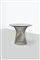 Tavolino rotondo, supporto in fili metallici cromati, piano in legno.