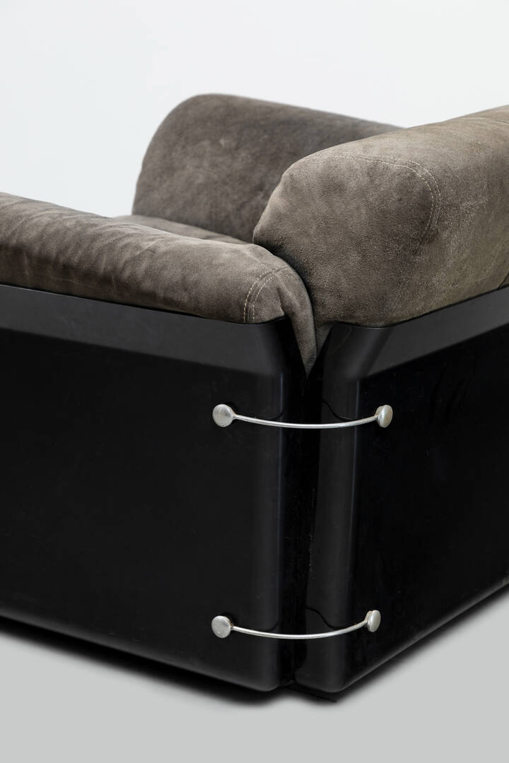 Struttura in abs, particolari in metallo cromato, imbottitura rivestita in tessuto.