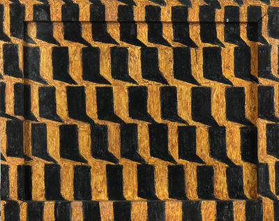 ALBERTO GARUTTI Senza titolo con tante righe gialle, 1986 tecnica mista su legno con vetro cm. 80 x 100 firmato,titolato e datato sul retro etichetta e timbro Galleria la Bertesca - Genova Senza titolo con tante righe gialle, 1986 mixed media on wood with glass, cm. 80x100 signed, titled and dated on the reverse Label and stamp from Galleria La Bertesca, Genova
