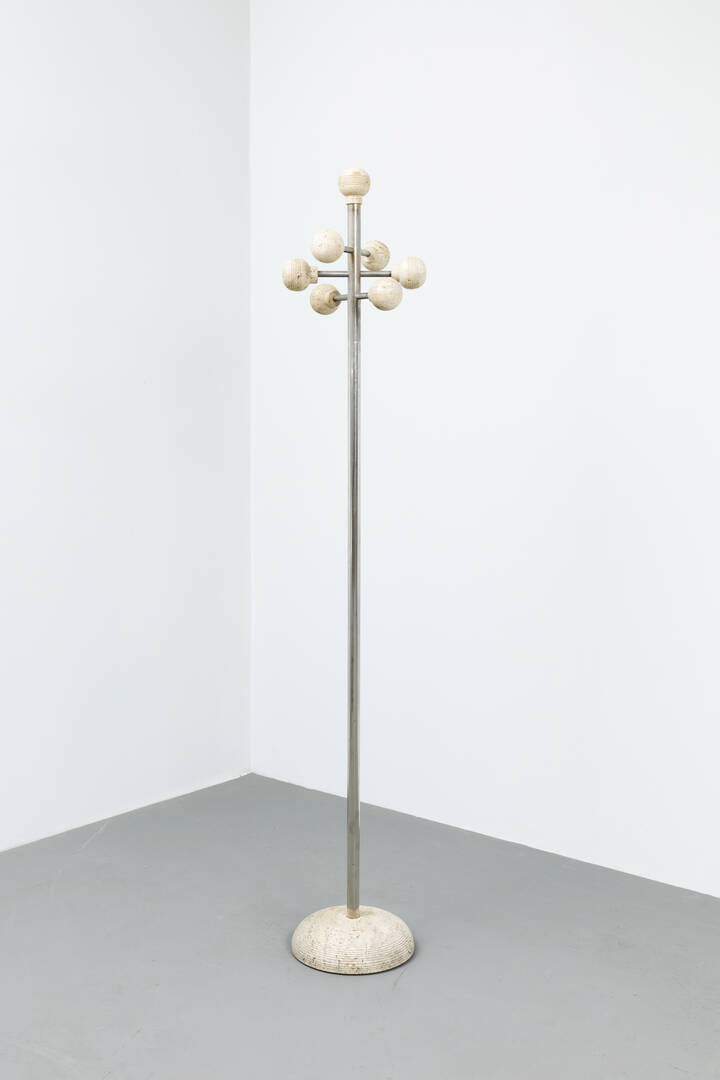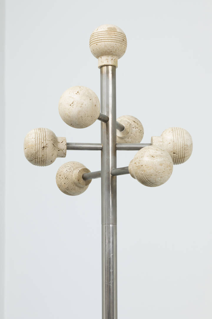 Appendiabiti in travertino e metallo cromato.