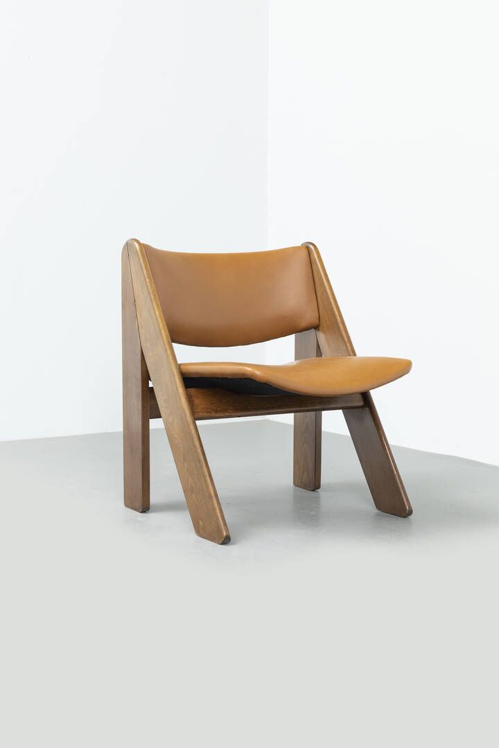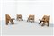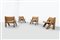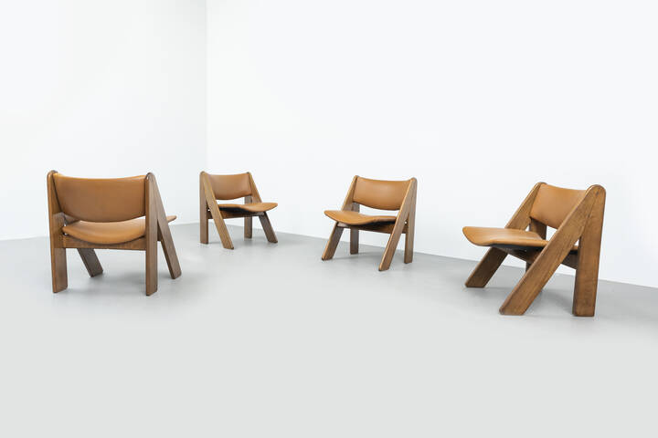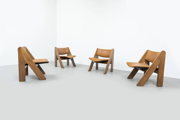 Quattro poltroncine con struttura in legno e rivestimento in pelle.