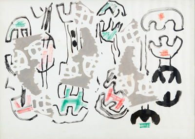 GIUSEPPE CAPOGROSSI Superficie CP/801, 1952 Tempera e pennarelli colorati su carta, cm. 48x67 pubblicazioni:Capogrossi, Gouaches, collages,disegni, pag. 317, scheda n.308,Electa ed.1981. Giuseppe Capogrossi (Roma 1900-Roma 1972) Superficie CP/801, 1952 Tempera and coloured pens on paper, cm. 48x67 Literature:Capogrossi, Gouaches, collages, drawings,page 317,record card n.308 Electa ed. 1981