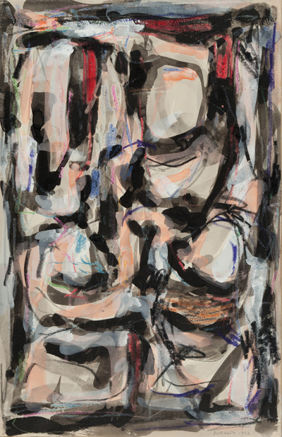 PIERO DORAZIO Senza titolo, 1957 tecnica mista su carta intelata, cm. 49x32...