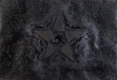 GILBERTO ZORIO Stella nera su nero, 2005 sabbia di stromboli su cartone cuoio, cm. 80x117 firmata e datata in basso a destra firmata, datata e titolata sul retro autentica dell'artista su fotografia Stella nera su nero, 2005 stromboli sand on leather cardbord, cm. 80x117 signed and dated in the bottom right signed, dated and titled on the reverse photo certificate from the artist