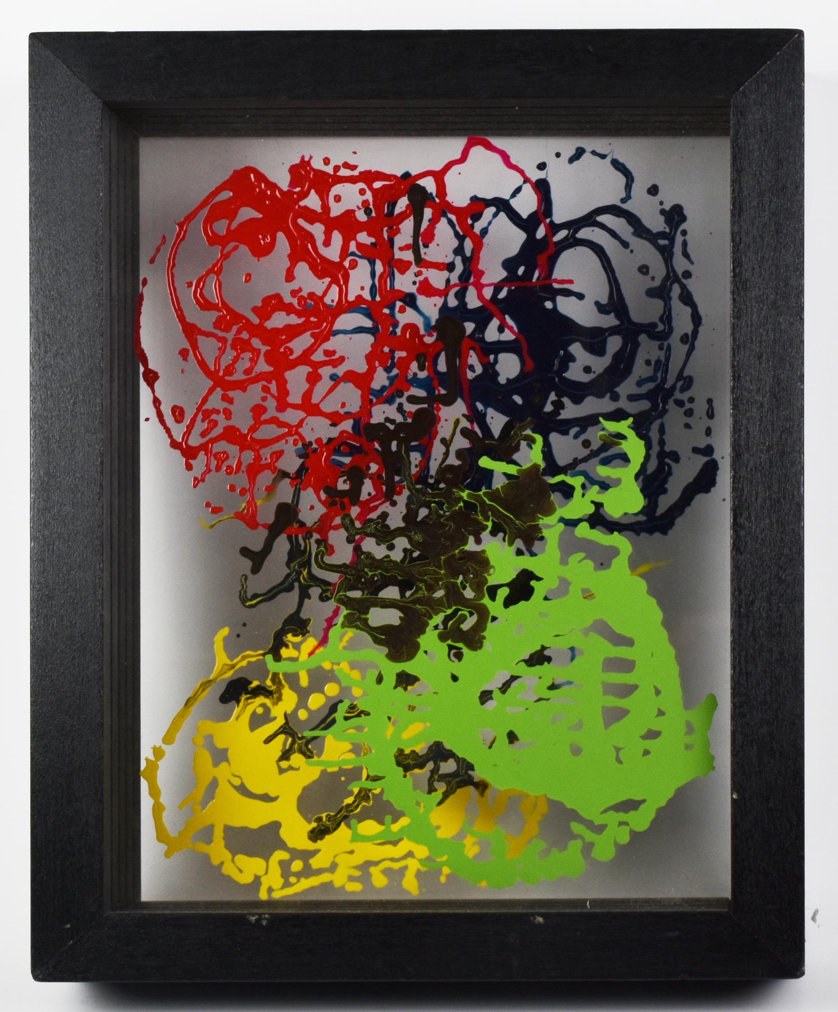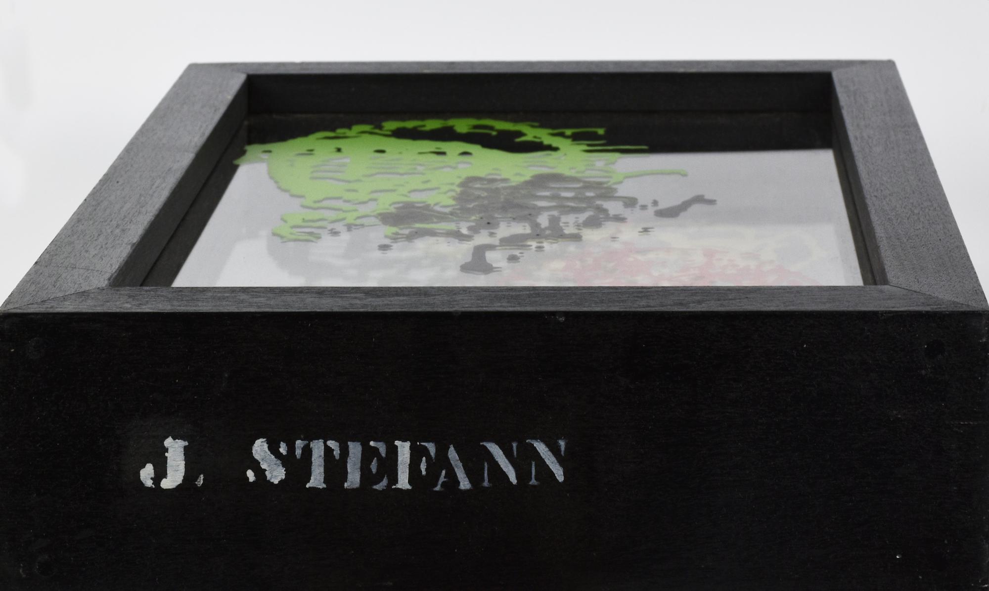 Johnny Stefann SCULTURA box in legno con pannelli in plexiglass e acrilico,...