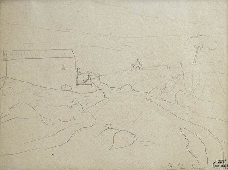 Andrè Derain PAESAGGIO ROMANO matita su carta, cm 20,5x27,7 data e timbro...