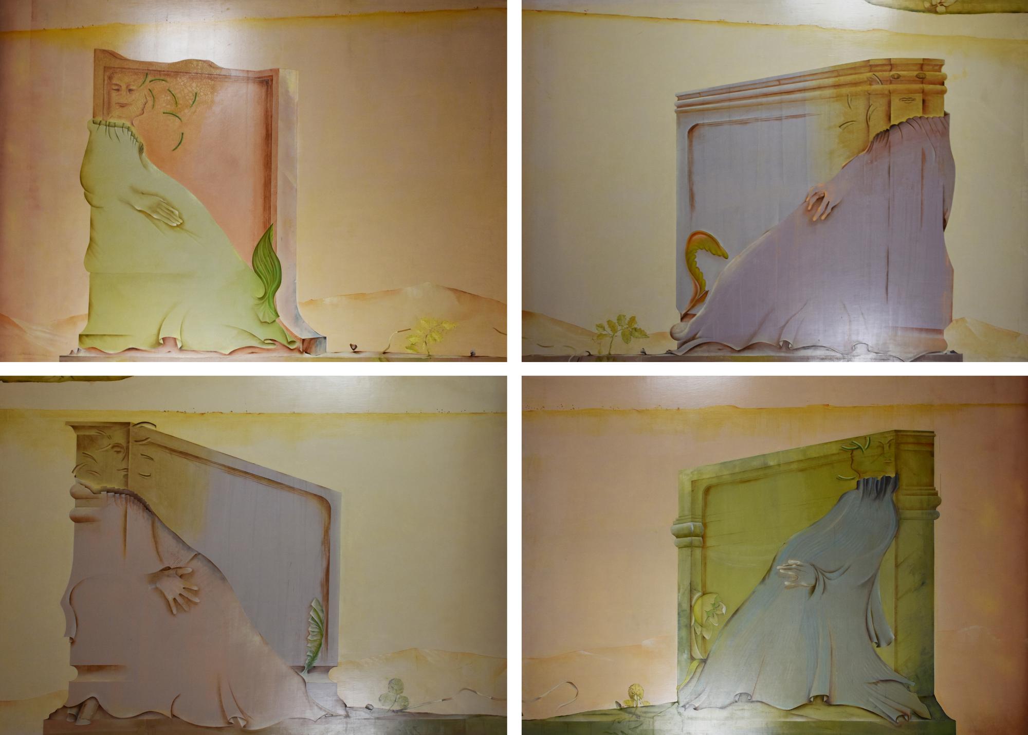 olio su tela, due elementi cm 150x210 e due elementi cm 150x200; misura totale cm 300x410