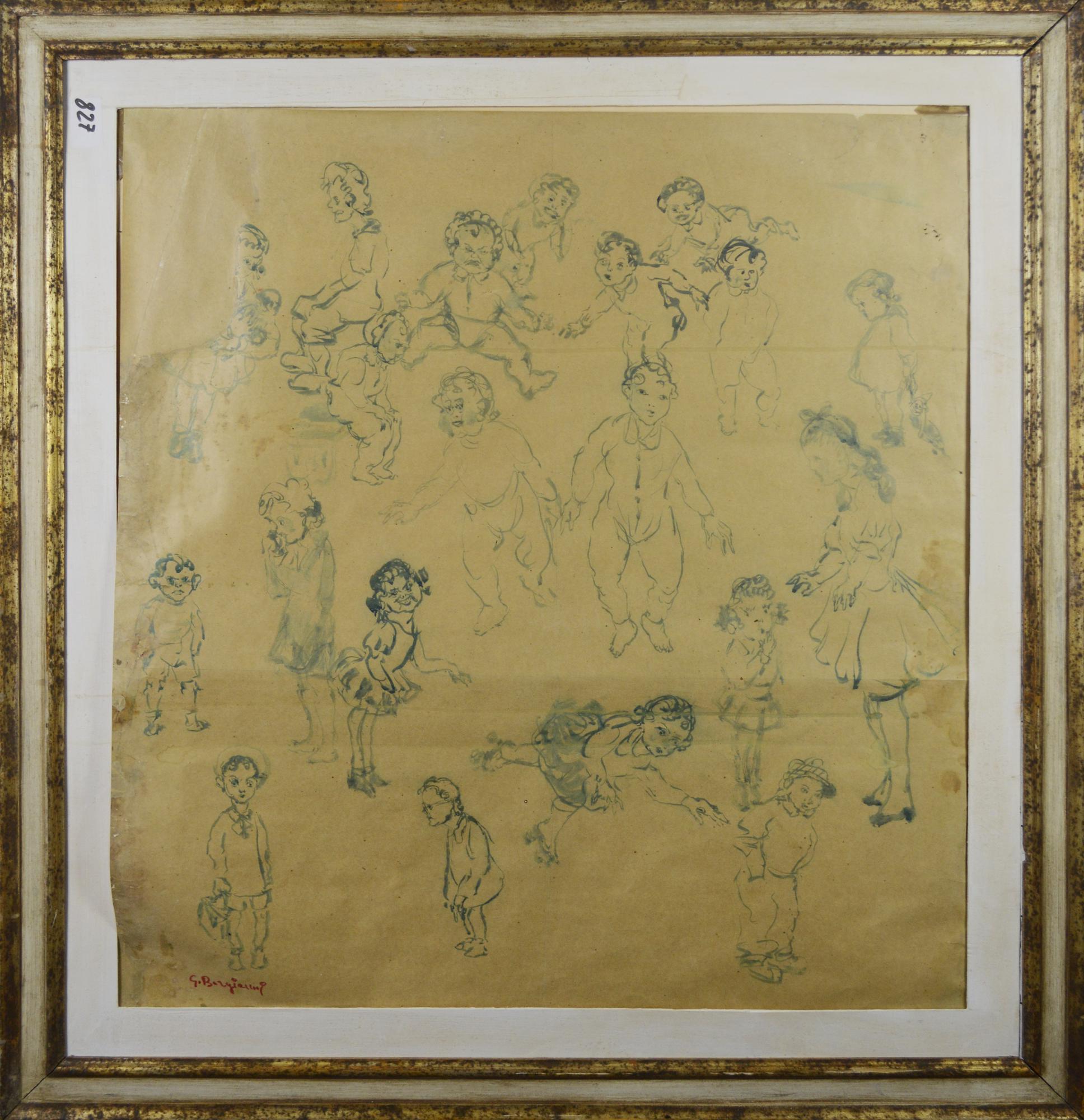 Guido Borgianni IL MONDO FELICE. SEI BAMBINI tecnica mista su carta, cm 80x75...