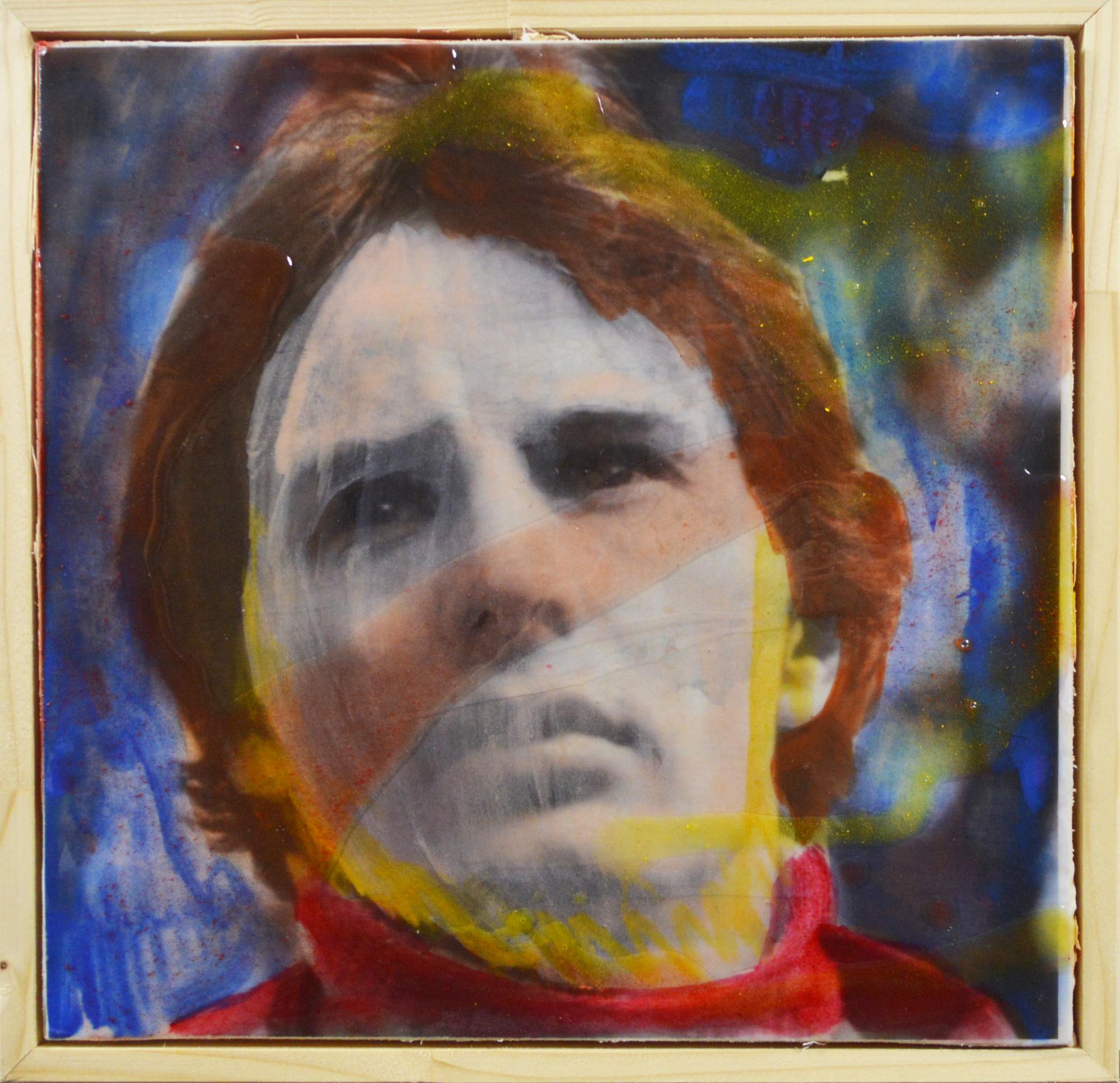 Ugo Sani GILLES VILLENEUVE acrilico e resina su tela, cm 28x28 sul retro:...