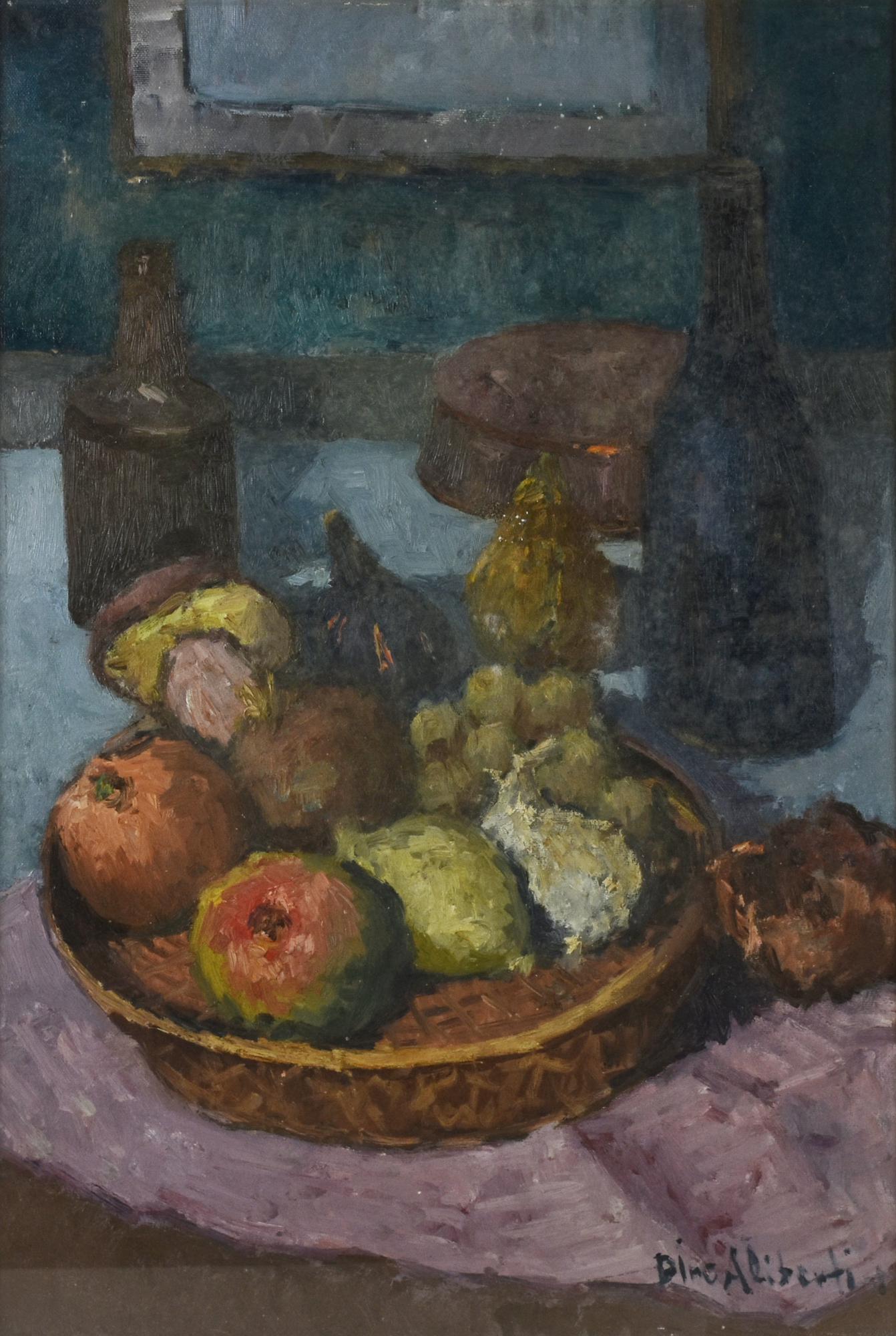 Dino Aliberti NATURA MORTA olio su tela, cm 60x40 firma sul retro: titolo