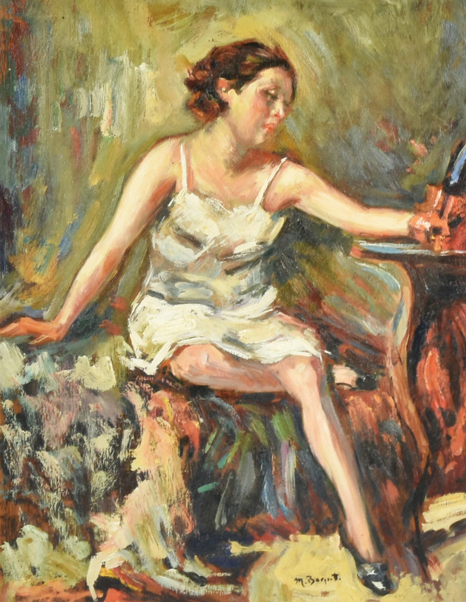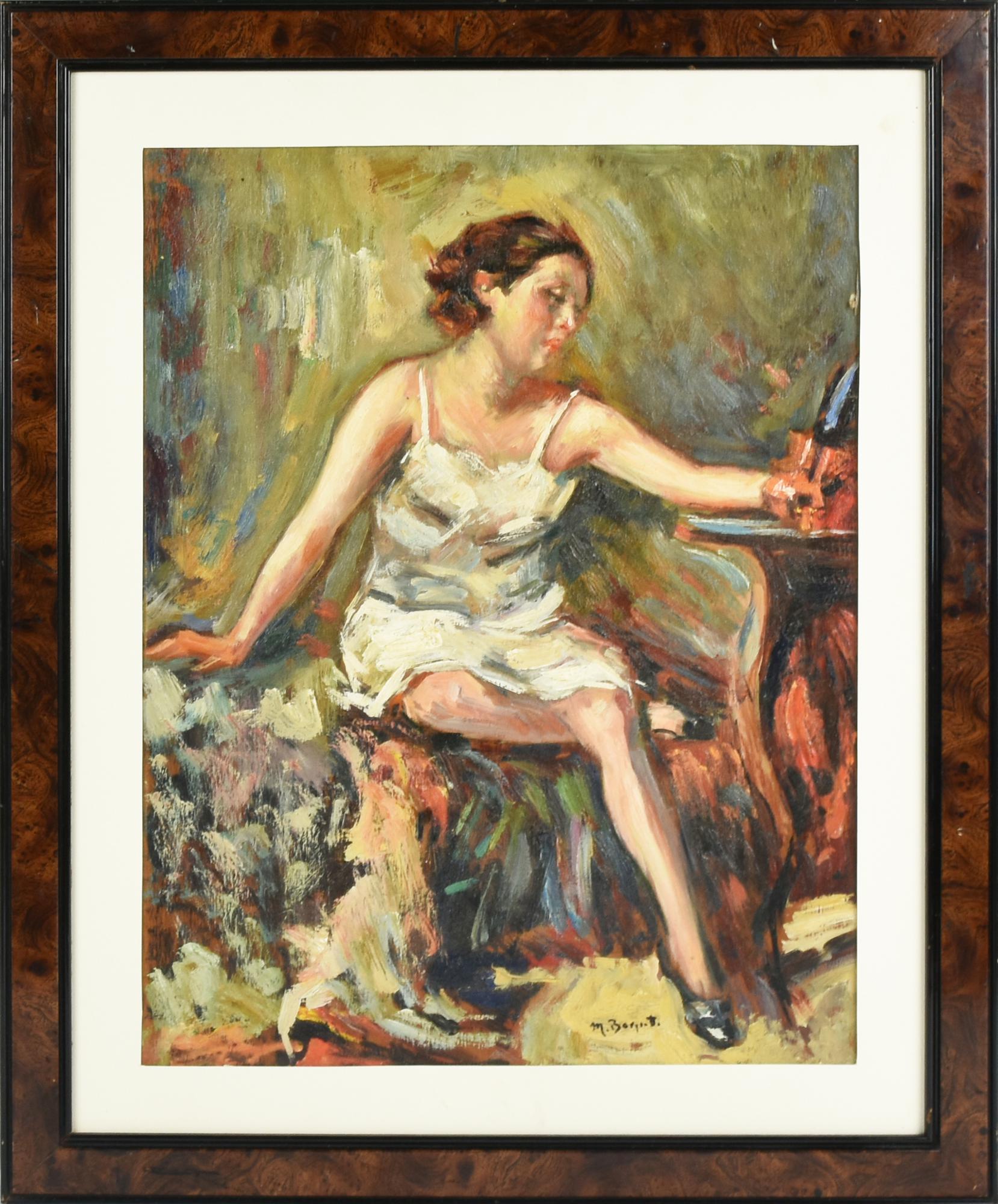 Mario Borgiotti MODELLA olio su cartone, cm 43x34 firma sul retro: firma e...