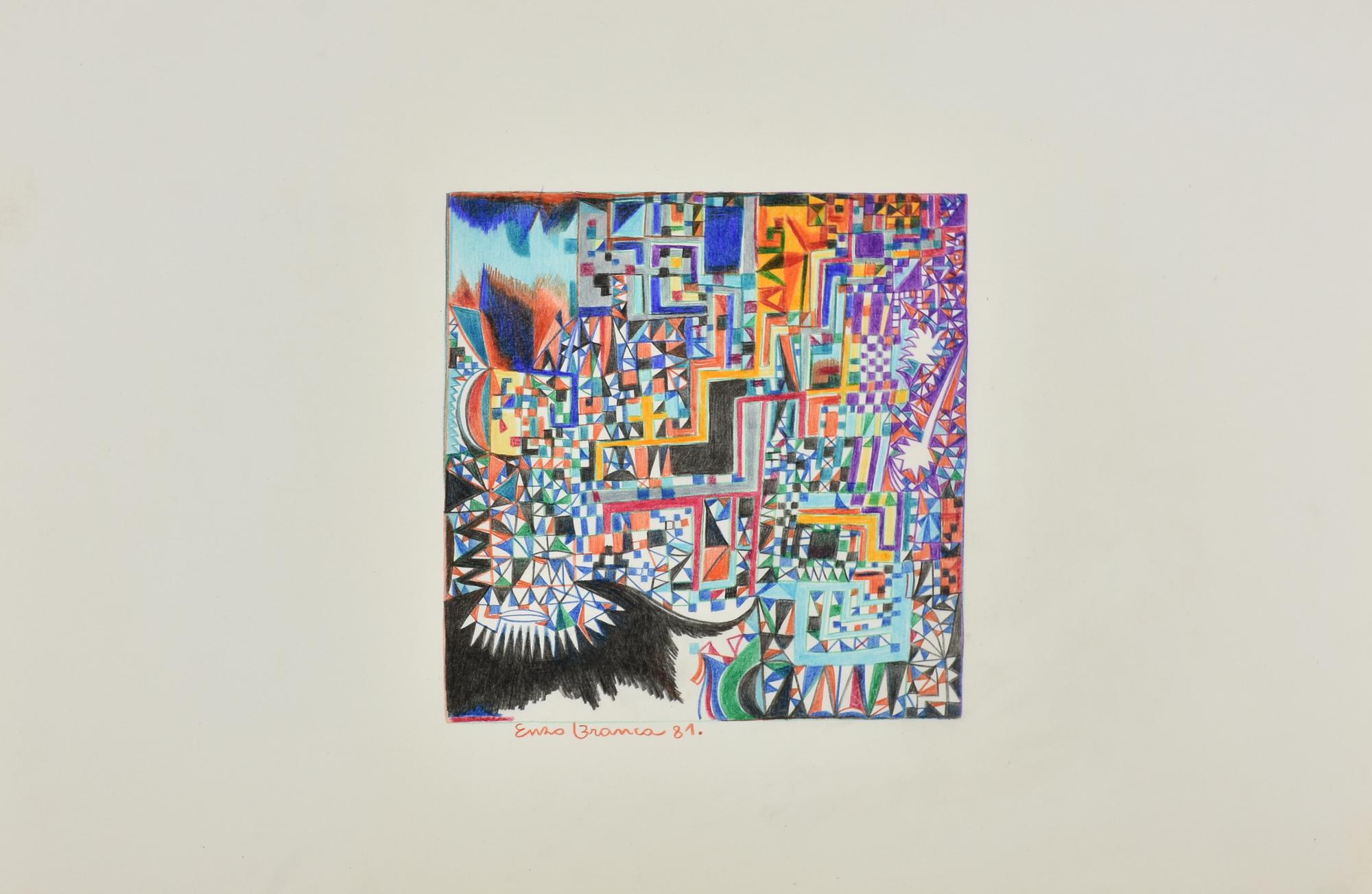 Enzo Branca SENZA TITOLO matite colorate su carta, cm 33x50 firma e data sul...