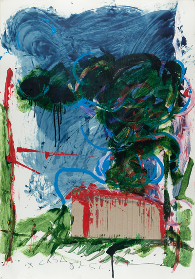 MARIO SCHIFANO X casa, 1987 tecnica mista su carta cm. 100,2x70,2 firmato e...