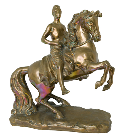 GIORGIO DE CHIRICO Cavallo e cavaliere con berretto frigio, 1987 bronzo lucidato e patinato, cm. 36x33x12 (gesso del1966 tratto da una terracotta del 1940) esemplare E.A./II/II firmata e numerata sulla base, punzonatura della Fonderia Bonvicini di Verona marchio del centenario della nascita del Maestro Giorgio De Chirico Autentica di telemarket S.p.a. Su fotografia Quest'opera fa parte dell'edizione di 9 esemplari di cui 7numerati da I/VII più due prove d' artista E/A I/II E/A II/II e una prova fuori commercio non numerata da destinare alla Fondazione Giorgio ed Isa De Chirico. L'edizione è stata eseguita presso la fonderia Bonvicini di Verona (1988 e 1991) in occasione del centenario della nascita del Maestro, ed èstata autorizzata dalla signora Isabella De Chirico alla signora Lisa Sotilis in data 27 marzo 1987 Bibliografia: Giorgio De Chirico, Museu Brasileiro da escultura Marilisa Rathsam - San Paolo, 16 marzo -28 aprile 1998 Torcular editore ; pubblicato a pag 55; De Chirico The Centenary sculptures Le sculture del centenario - Umberto Allemandi & C. editore; immagine 30 dell'elenco Cavallo e cavaliere con berretto frigio, 1987 polished and varnished bronze cm. 36x33x12 (plaster of 1966, obtained from a terracotta of 1940) edition E. A/II/II signed and dated on the basis, punching Fonderia Bonvicini - Verona centenary stamp of Master Giorgio De Chirico’s birth. photo certificate from Telemarket S.p.a. This sculpture is included in the edition of 9 models of which 7 numbered I/VII, more two proofs of artist E/A I/II and another not for sale, not numbered to design to Fondazione Giorgio and Isa De Chirico. The edition has been executed in Fonderia Bonvicini of Verona on the occasion of the centenary of Master’s birth, authorized by Mistress Lisa Sotilis on 27 March 1987 literature: Giorgio De Chirico Museu Brasiliero da Escultura Marilisa - Rathsam - San Paolo 16 March-28 April 1988 Torcular editor, pg. 55; De Chirico The Centenary sculpture, Umberto Allemandi & C. editor, picture 30.