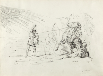 GIORGIO DE CHIRICO Ippolito, 1947/48 matita su carta, cm. 67x48 firmato in basso a destra dichiarazione di autenticità di Claudio Bruni Sakraischik , in data 1 giugno 1983, su fotografia "Si tratta di uno studio per la cartella delle litografieI Cavalli", edita nel 1948 Ippolito, 1947-48 pencil on paper cm. 67x48 signed in the bottom right photo certificate from Claudio Bruni Sakraischik on 1st june 1983 study for the portfolio of lithographs “I Cavalli” edited in 1948