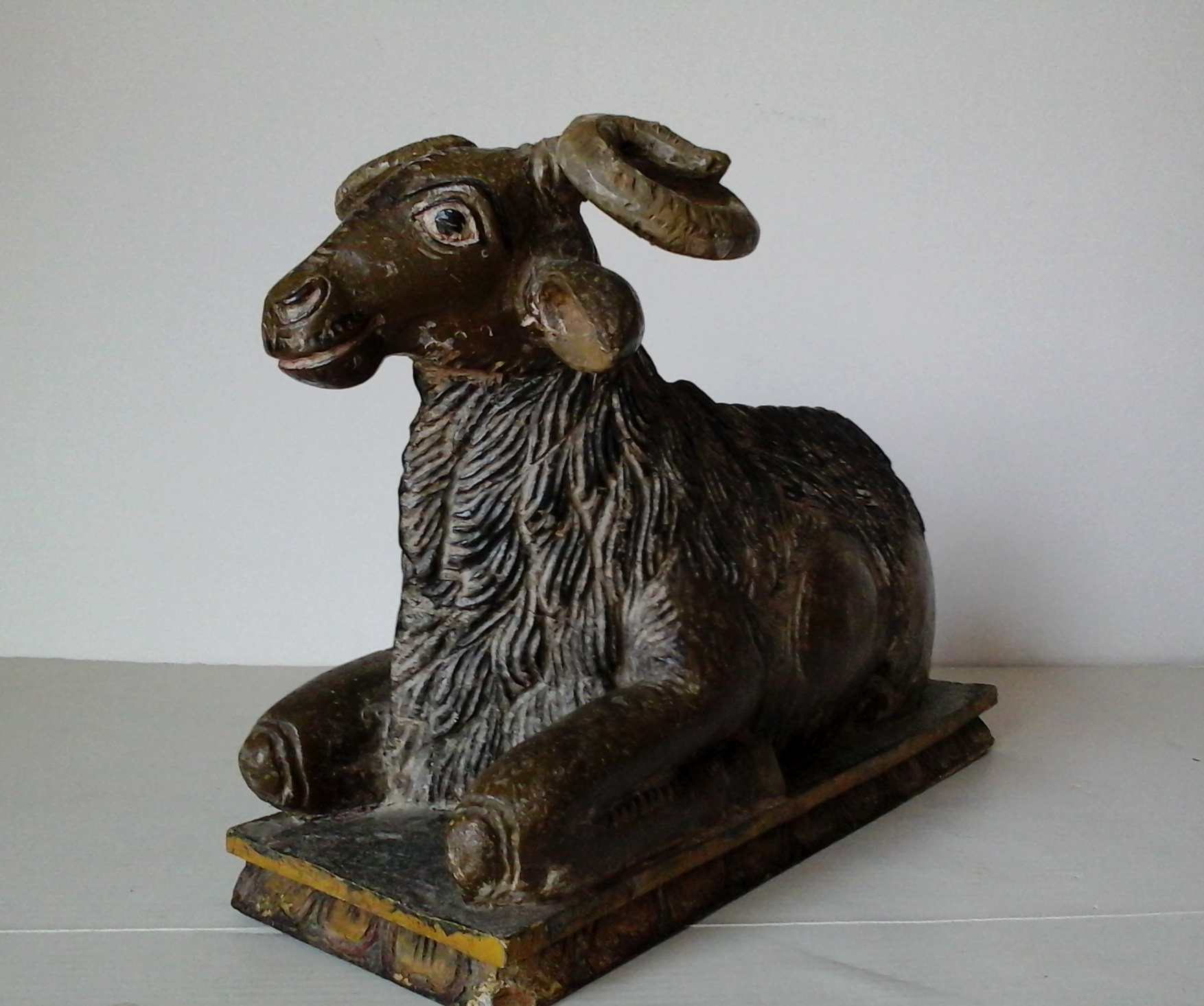 SCULTURA ORIENTALE ZOOMORFA IN LEGNO POLICROMO CM.40X15 H.CM.30