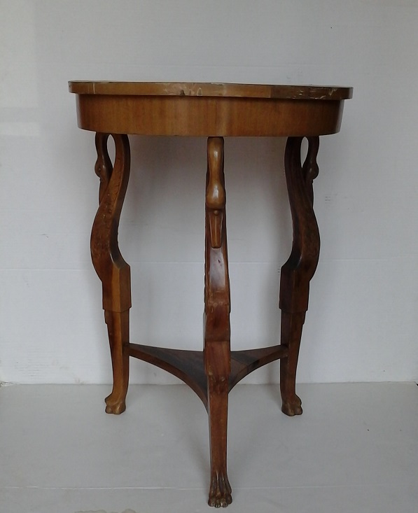 TAVOLINO ROTONDO IN LEGNO CON GAMBE A CIGNO - DIAMETRO CM.50 H.CM.70 LIEVI DIFETTI