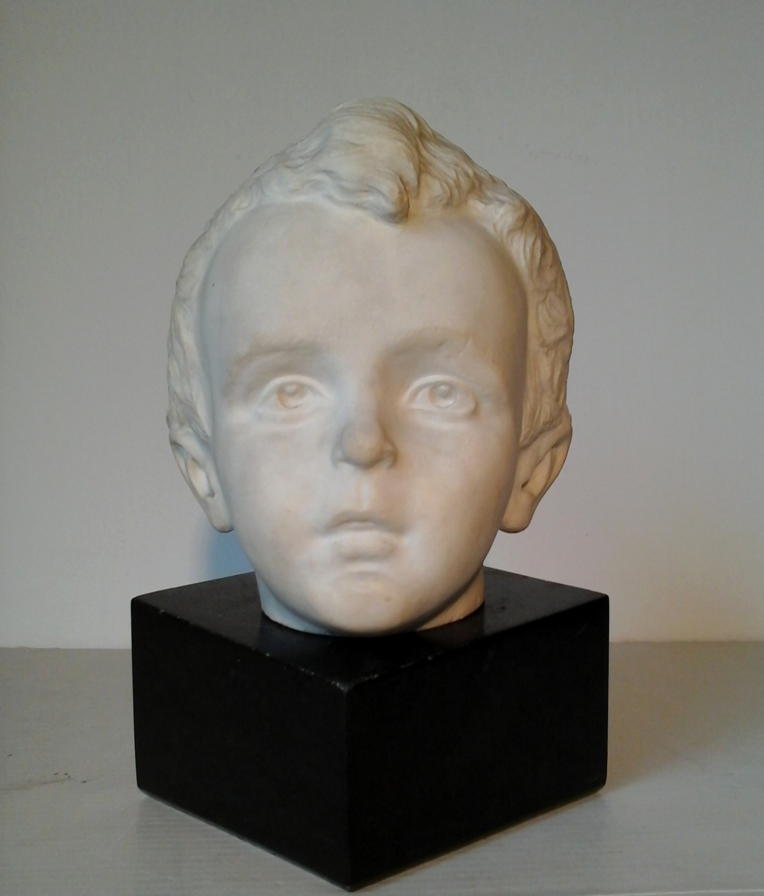 TESTA INFANTILE IN MARMO BIANCO CON BASE IN LEGNO CM.14X14 H.CM.29