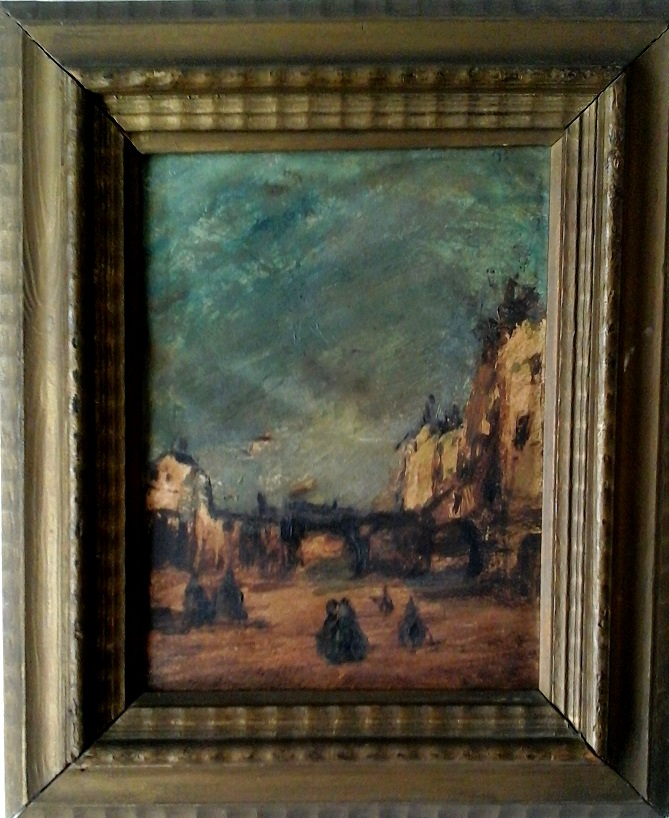 GOLA EMILIO (ATTR.) (1851-1923) - "IMPRESSIONE-NOTTURNO" CON DEDICA - OLIO SU CARTA CM.24X19 FIRMATO E TITOLATO AL RETRO