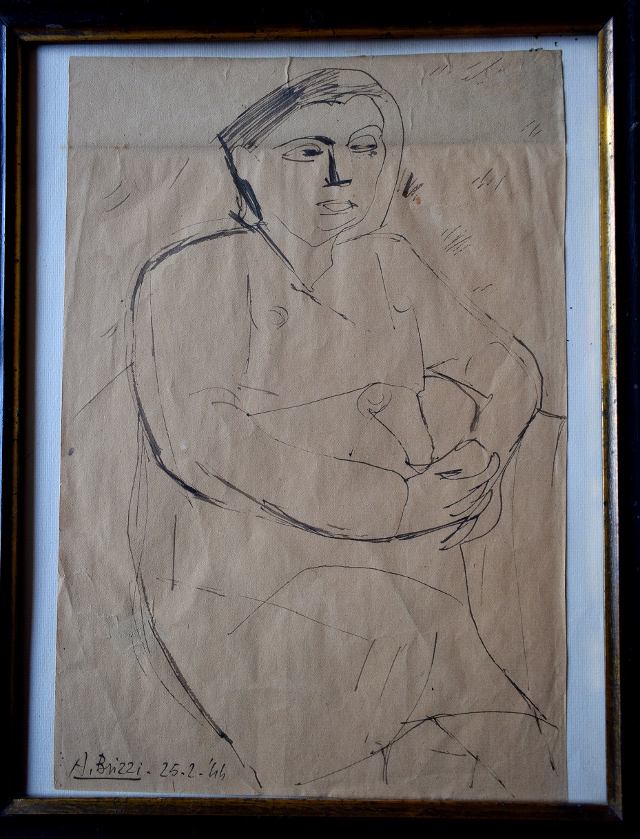 BRIZZI ALDO (1907-1957) - FIGURA - CHINA SU CARTA CM. 32X21 - FIRMATO E DATATO 1944 IN BASSO A SINISTRA