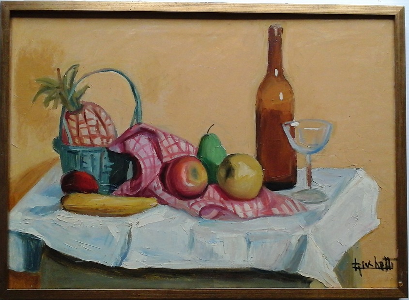 RICCHETTI LUCIANO (1898-1977) - NATURA MORTA CON ANANAS - OLIO SU TELA CM.50X70 - FIRMATO IN BASSO A DESTRA