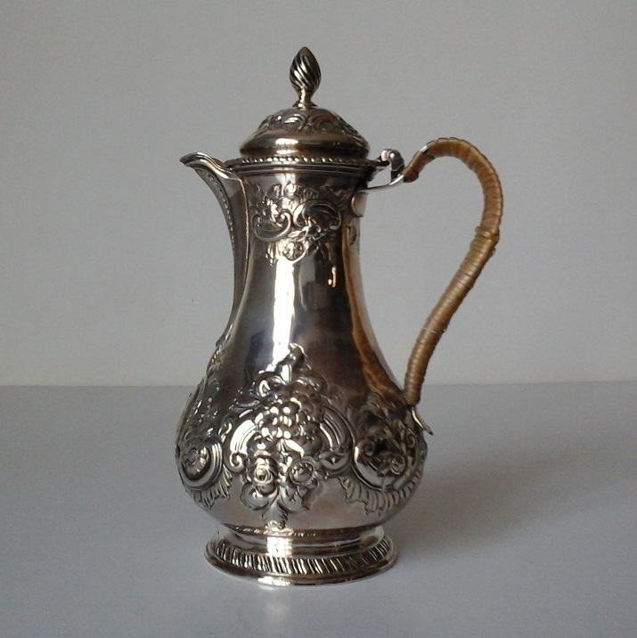 CAFFETTIERA SBALZATA IN ARGENTO EDIMBURGO 1768/69 CON PUNZONI GR.316 H.CM.21